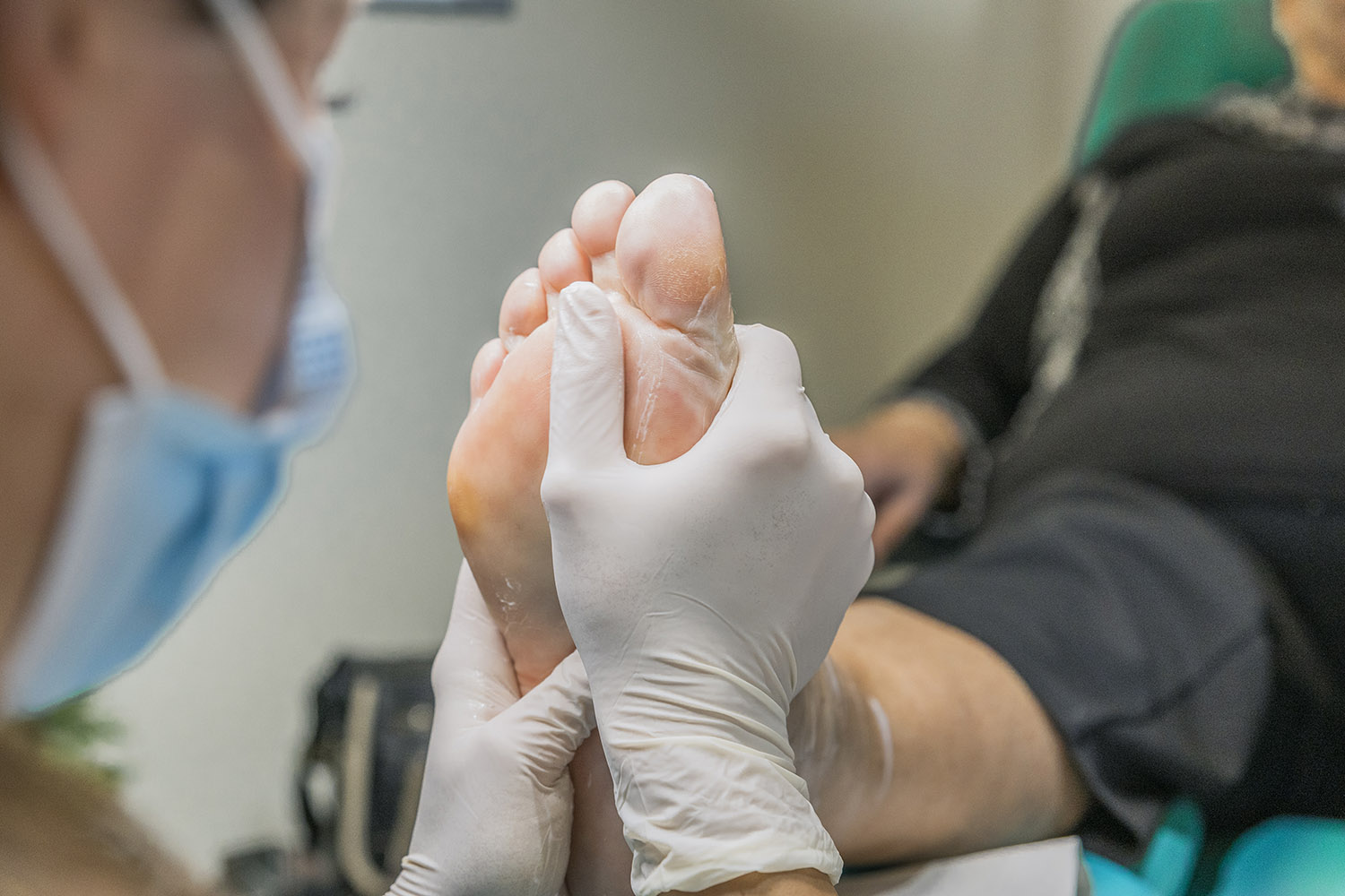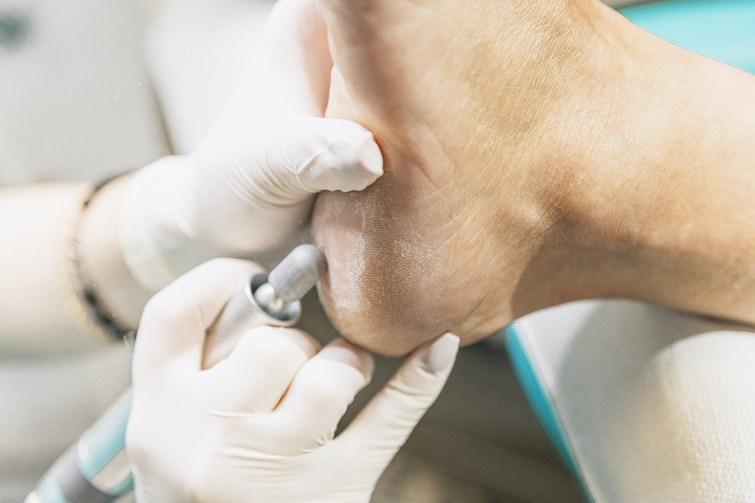 Fissures or cracks on the heel (or other areas of the foot) occur as a result of callused skin (hyperkeratosis), which is not flexible or elastic and cracks under pressure. They are divided into small and large, superficial and deep, and can also be bleeding or purulent. They represent a wound on the foot, which can lead to infection if not properly repaired and cared for. Fissures are cleaned and the hard skin is removed. The area is afterwards cared for or protected until the fissures heal.